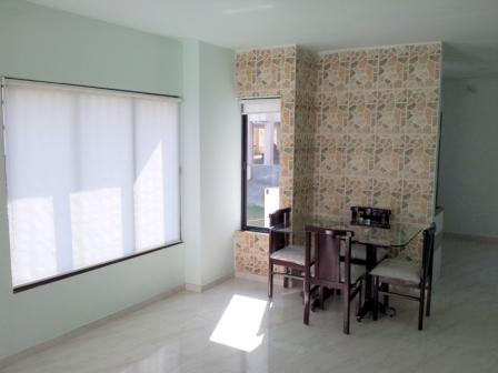 Once you step into our Apartment you will surely lapse into your imagination. Thoughtful Design underscores Convenience. A spacious Living Room having a Imposing Main Door offers liberty for your choice of Furniture to accomodate and Furnishings to adorn with. One cannot but notice the Elevation Tiles Cladding on the Dining Wall. A Modular Kitchen designed with ample Storage space, and yet leaving you with sufficient open space. Both Bedrooms are spacious enough to hold King size Beds, a standard Wardrobe and yet have enough room for free movement. Tall and Large Windows in all Rooms allow ample Light and fresh Air. Except for a couple of bold walls, the entire Apartment has been painted with Pastel shades.